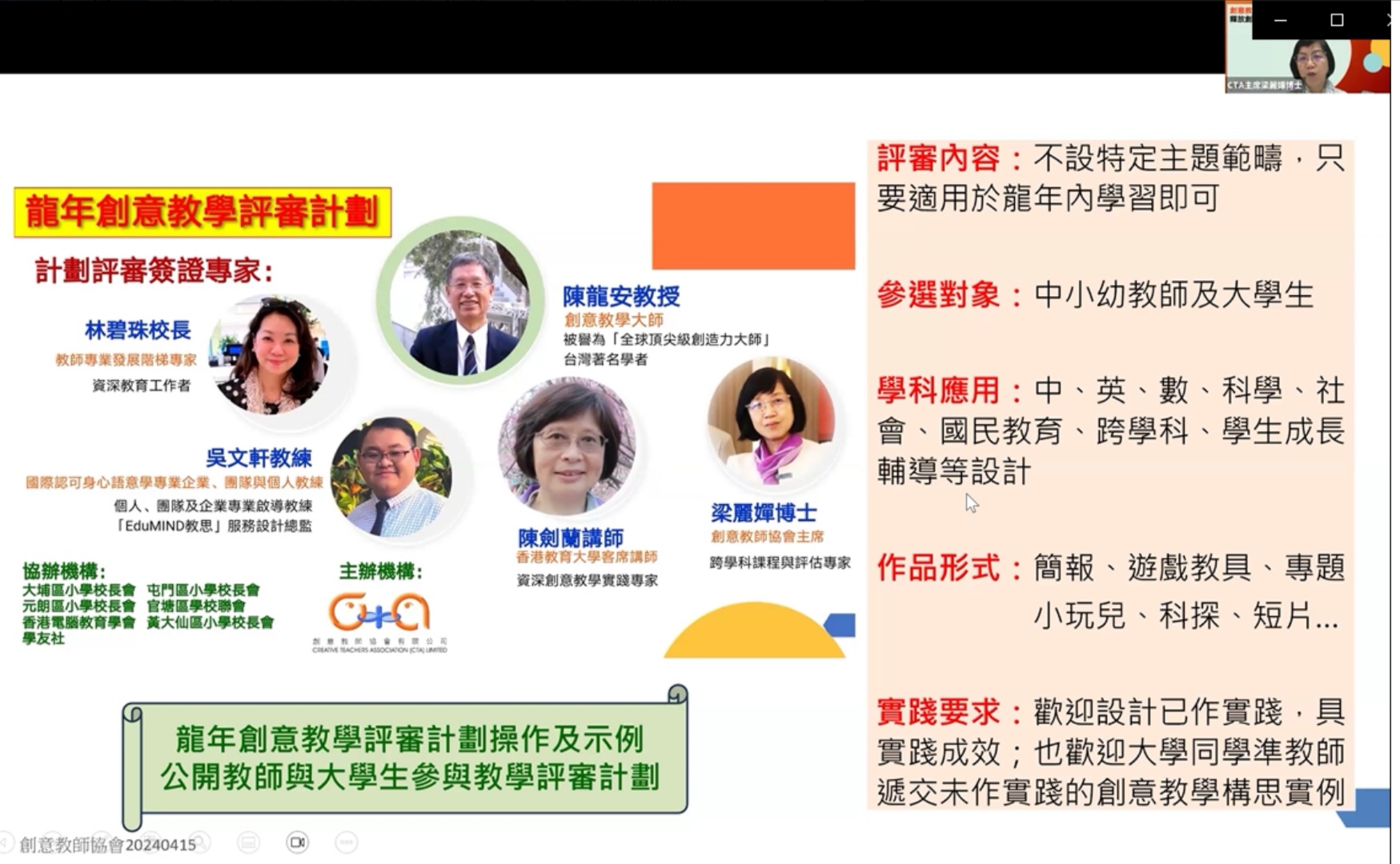 陳劍蘭講師簡介「龍年創意教學評審計劃」等級證書的評審原則與標準及遞交作品注意事項。